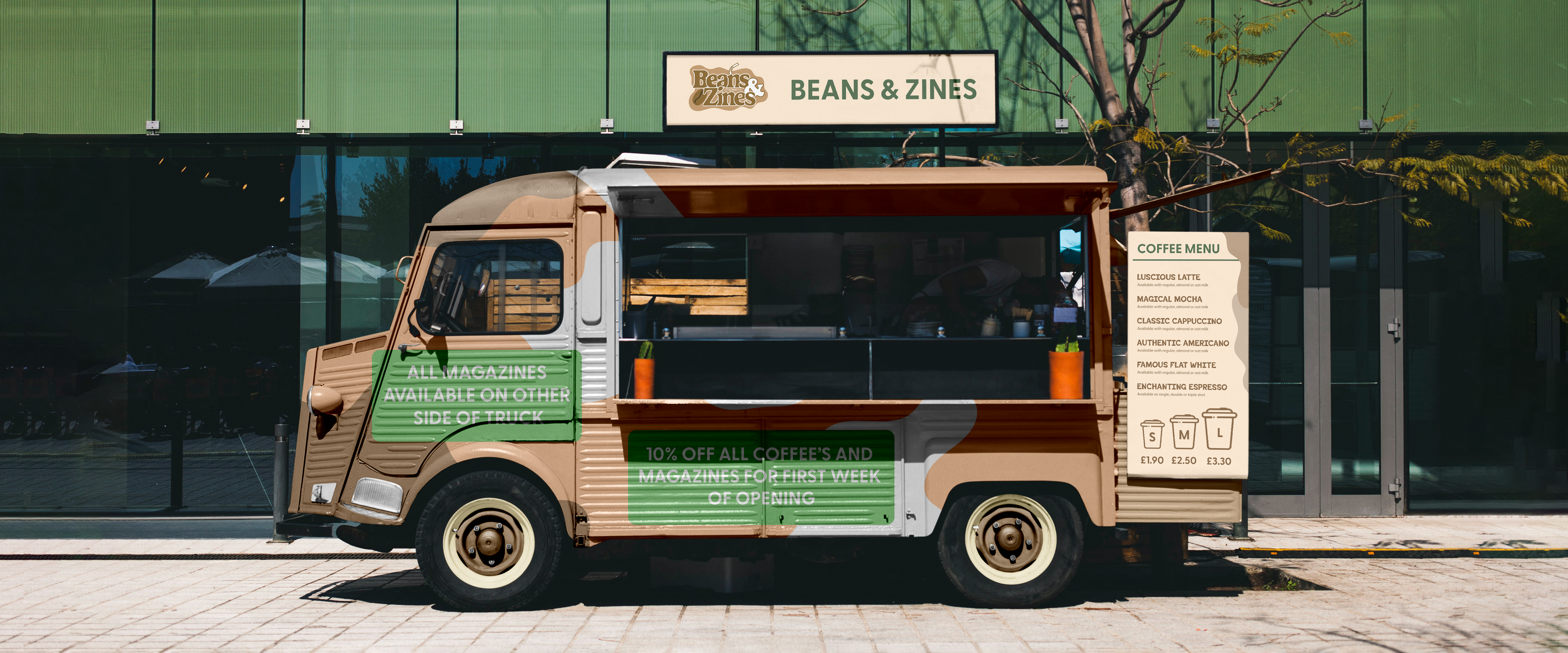 Beans & Zines is an eco-friendly coffee and magazine truck located in Bristol. We believe in the transformative power of a good cup of coffee and the inspiration found within the pages of carefully selected publications. With every sip and turn of a page, we invite you to join us on a journey of sensory delights and thought-provoking discoveries. Embrace the fusion of flavors, ideas, and sustainable practices as we redefine the mobile coffee experience, one sip and one page at a time. Welcome to our vibrant world on wheels, where coffee, art, and literature collide.